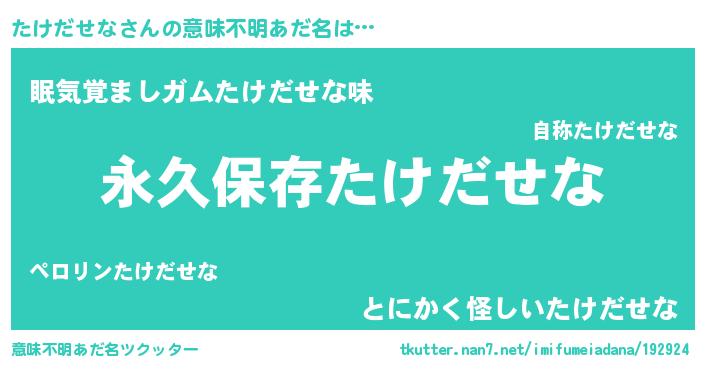 | ヘコむあだ名 | 『たけだせな(苦笑)』『たけお』 |