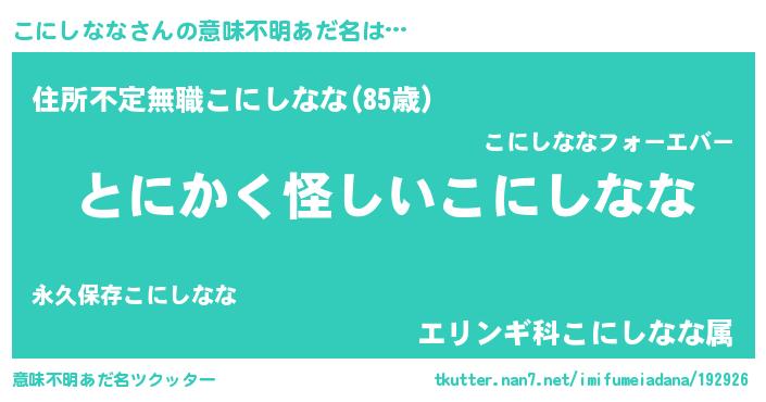 | 欧米人風あだ名 | 『ウサインこにしなな』 |