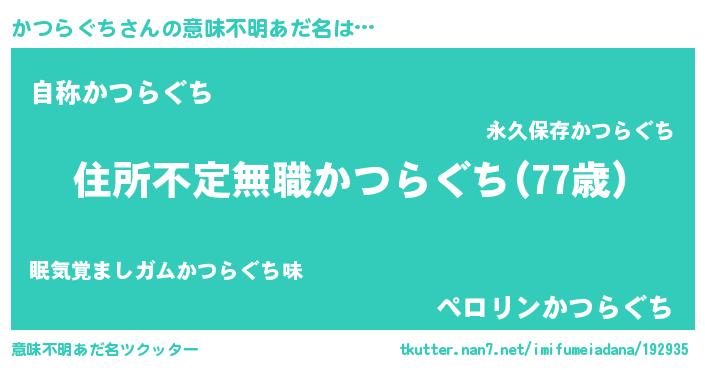 | ヘコむあだ名 | 『かつもー』『かつらぐち(遠い目)』 |