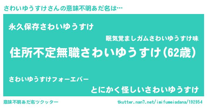 | ヘコむあだ名 | 『さわいゆうすけ(爆)』『さわぷりん』 |