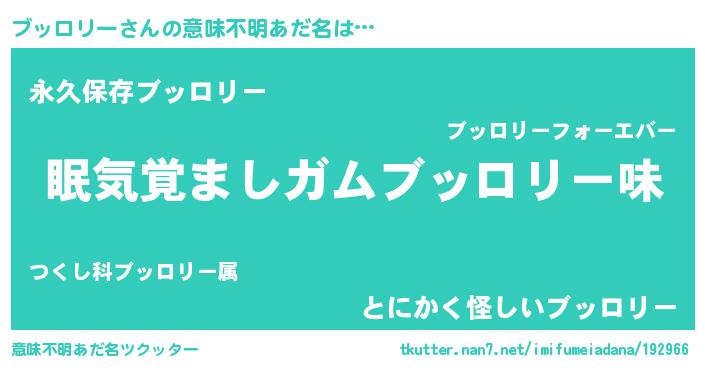| ヘコむあだ名 | 『ブッロリー(爆)』『ブッを』 |