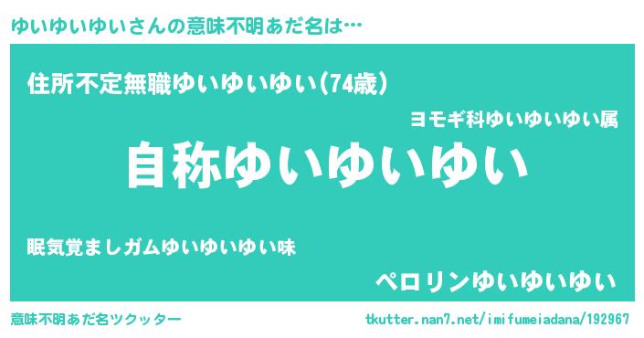 | 男性向けラノベタイトル風あだ名 | 『はたらくゆいゆいゆいさま!』 |