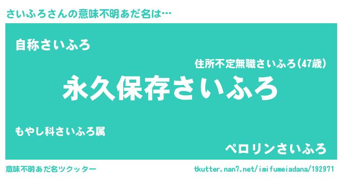 | ヒーロー風カッコイイあだ名 | 『ネオサイフロ』『最強戦士サイフロ』 |