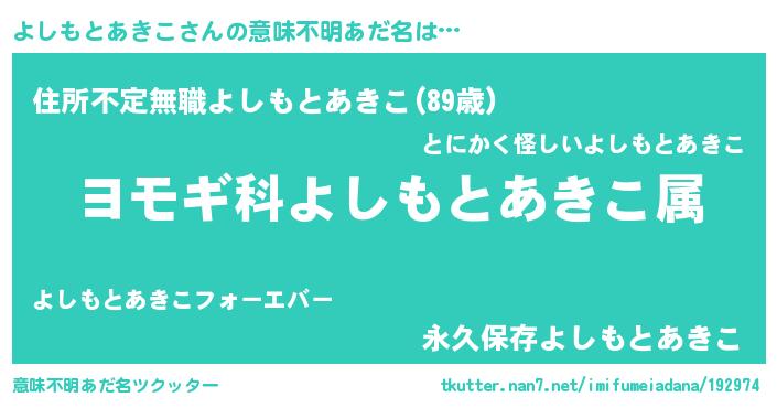 | ヘコむあだ名 | 『よしもとあきこ(震え声)』『よしぷりん』 |