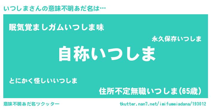 | 男性向けラノベタイトル風あだ名 | 『Re:いつしまから始める異世界生活』 |