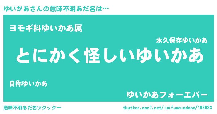 | 胡散臭い通販商品みたいなあだ名 | 『伝統あるサプリメント…その名も「ゆいかあ」』 |