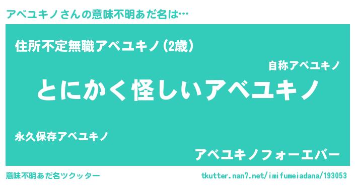 | 欧米人風あだ名 | 『ウサインアベユキノ』 |