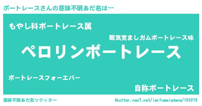| 男性向けラノベタイトル風あだ名 | 『ボートレースの憂鬱』 |
