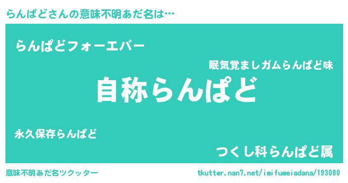 | 肩書あだ名 | 『らんぱど閣下』『らんぱど国家主席』 |