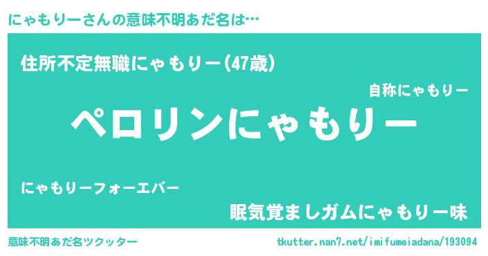 | 男性向けラノベタイトル風あだ名 | 『ニャモリーアートオンライン』 |