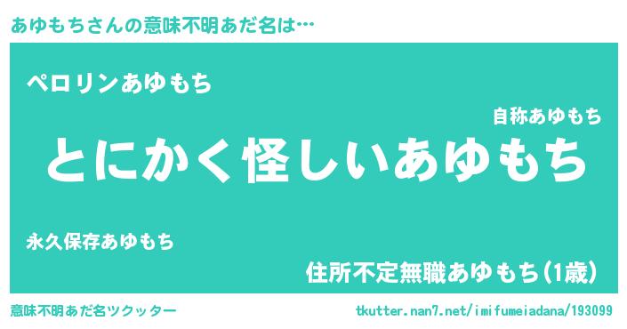 | ポケモン風あだ名 | 『ヒアユモチ』『アユチュウ』 |