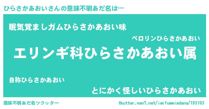 | 胡散臭い通販商品みたいなあだ名 | 『100人中100人が認めたイリジウム磁石…その名も「ひらさかあおい」』 |