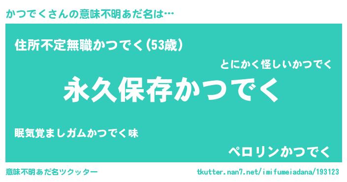 | 胡散臭い通販商品みたいなあだ名 | 『前代未聞の健康食品…その名も「かつでく」』 |