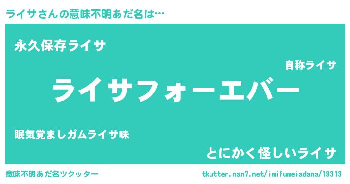 | 男性向けラノベタイトル風あだ名 | 『やはりライサの青春ラブコメはまちがっている 』 |