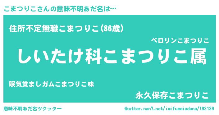 | ヘコむあだ名 | 『こまつりこ(小並感)』『こまっふぃ~』 |