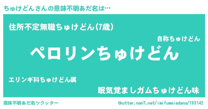 | 男性向けラノベタイトル風あだ名 | 『ちゅけどんの憂鬱』 |