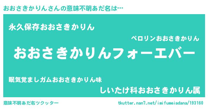 | 欧米人風あだ名 | 『おおさきかりん・ステッグマイヤー』 |