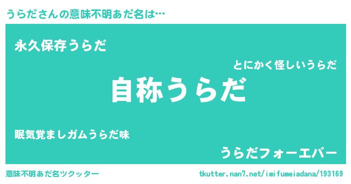| 男性向けラノベタイトル風あだ名 | 『Re:うらだから始める異世界生活』 |
