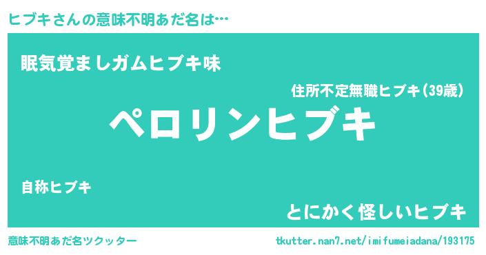 | ヒーロー風カッコイイあだ名 | 『スーパーヒブキ』『慈愛の使者ヒブキ』 |