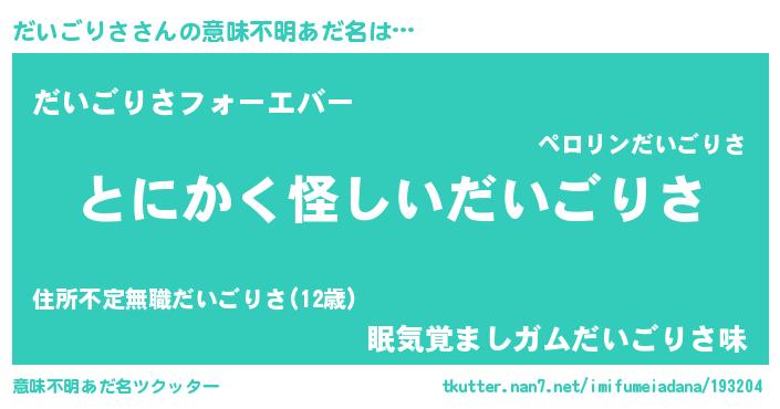 | ヒーロー風カッコイイあだ名 | 『魔戒騎士ダイ』『友情の使者だいごりさ』 |