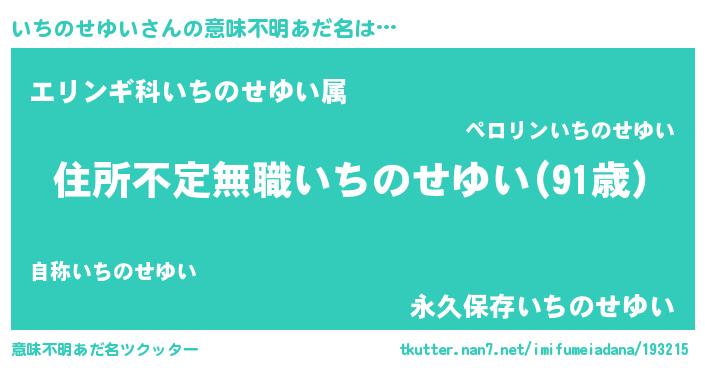 | 料理風あだ名 | 『いちのせゆいのカルパッチョ風』 |