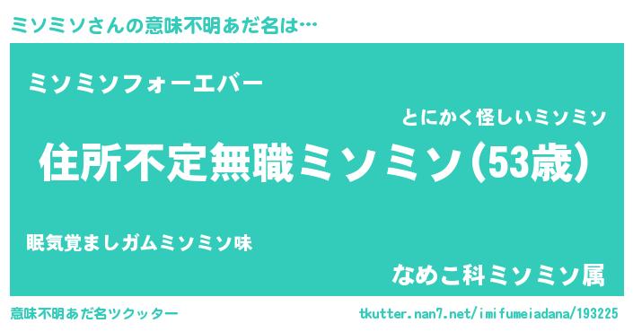 | ポケモン風あだ名 | 『ミーソイ』『ミソミダネ』 |