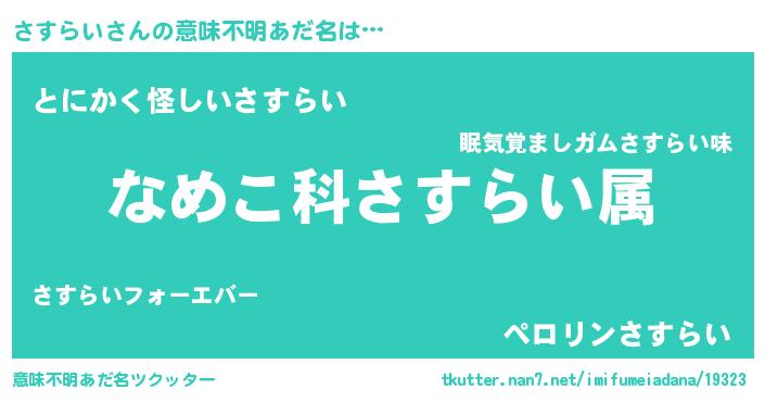 | 恥ずかしいあだ名 | 『サスリンリン』『プリティーさすらい』 |