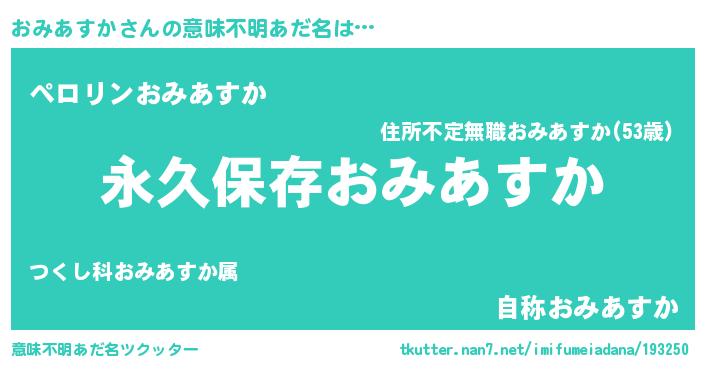 | ヘコむあだ名 | 『おみあすか(笑)』『おみにー』 |
