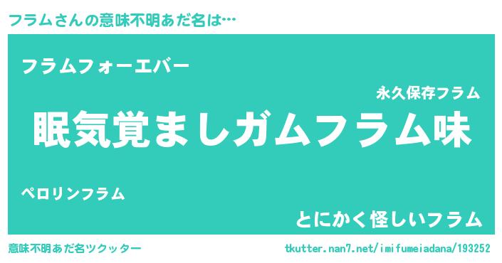 | ヒーロー風カッコイイあだ名 | 『愛の使者フラム』『ウルトラフラムマン』 |