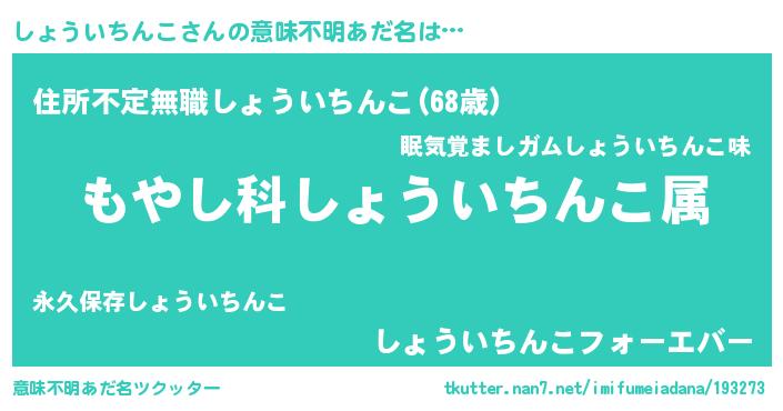 | 男性向けラノベタイトル風あだ名 | 『転生したらしょういちんこだった件』 |