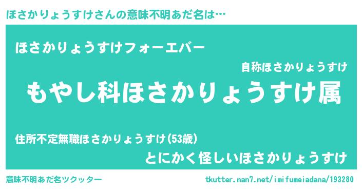 | 男性向けラノベタイトル風あだ名 | 『転生したらほさかりょうすけだった件』 |
