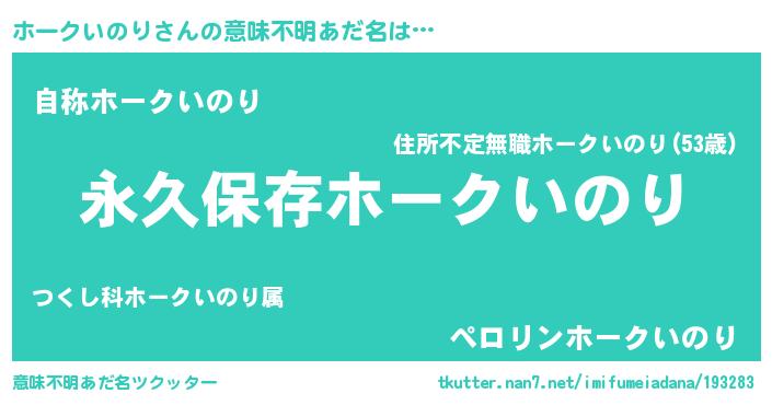 | 男性向けラノベタイトル風あだ名 | 『ホークいのりという概念が存在しない退屈な世界 』 |