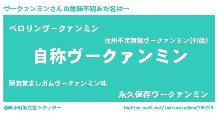 | 男性向けラノベタイトル風あだ名 | 『はたらくヴークァンミンさま!』 |