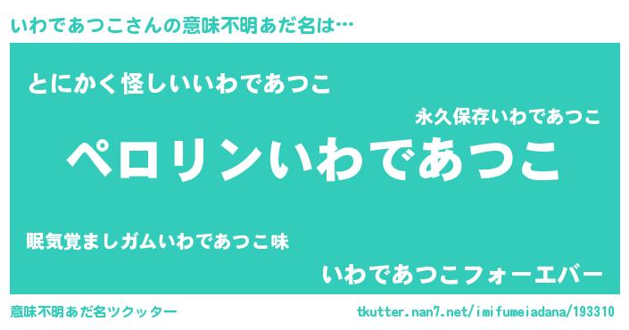 | 男性向けラノベタイトル風あだ名 | 『はたらくいわであつこさま!』 |