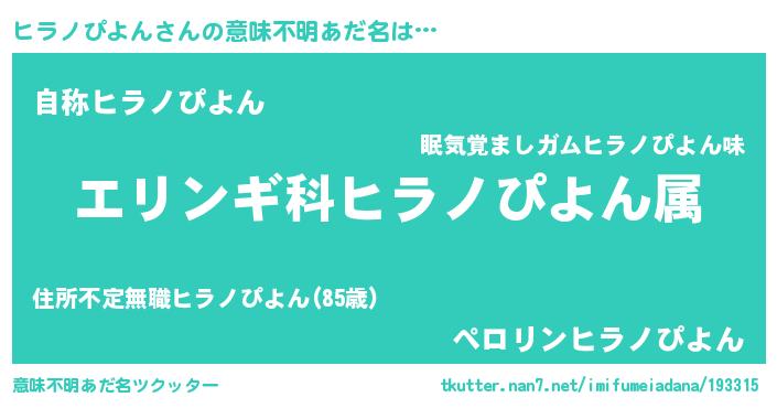 | 欧米人風あだ名 | 『ヒラノぴよん・ステッグマイヤー』 |