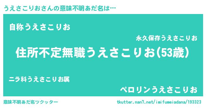 | ピコ太郎風あだ名 | 『ウコ史郎』『ピコウ郎』『ウウ太郎』 |