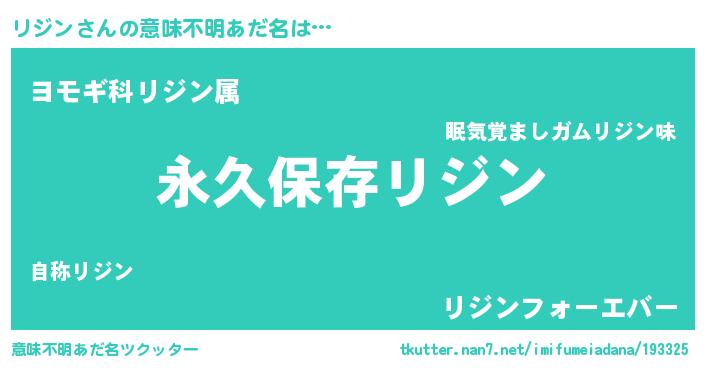 | 男性向けラノベタイトル風あだ名 | 『緋弾のリジン』『リジンスレイヤー』 |