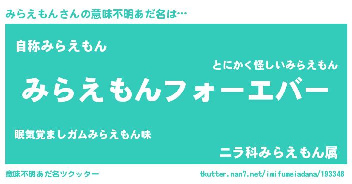 | ファンタジー風あだ名 | 『エターナルミラエモンー』『ゼミラトゥ』 |