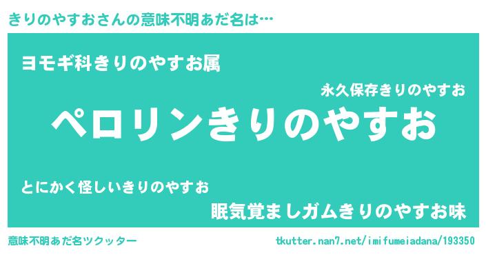 | 男性向けラノベタイトル風あだ名 | 『きりのやすおの憂鬱』 |