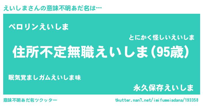 | 恥ずかしいあだ名 | 『プリティーえいしま』『えいちん』 |