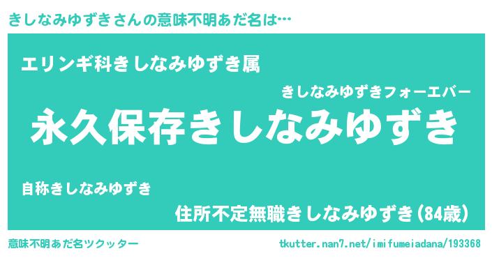 | 胡散臭い通販商品みたいなあだ名 | 『来世でも幸せになれる健康食品…その名も「きしなみゆずき」』 |