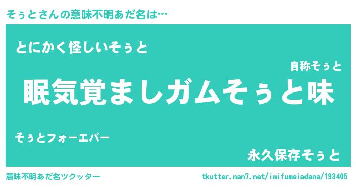 | 欧米人風あだ名 | 『ダニエルそぅと』『ウサインそぅと』 |