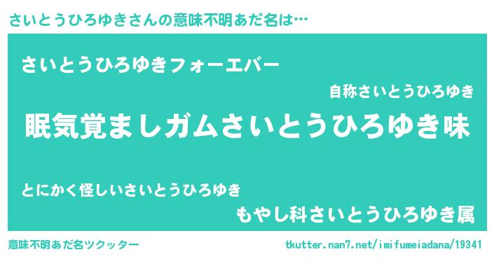 | 男性向けラノベタイトル風あだ名 | 『おまえをオタクにしてやるから、俺をさいとうひろゆきにしてくれ! 』 |