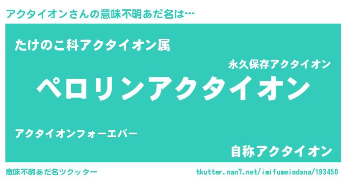 | 男性向けラノベタイトル風あだ名 | 『アクタイオンアートオンライン』 |