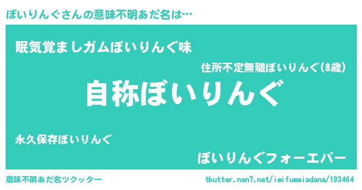 | 女子向けラノベタイトル風あだ名 | 『闇のぼいりんぐ』『ぼいりんぐ恋絵巻』 |
