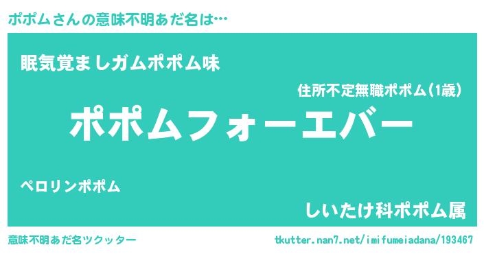 | 女子向けラノベタイトル風あだ名 | 『ポポムの雑貨屋さん』『ポポム恋絵巻』 |