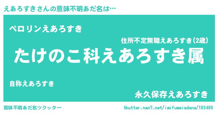 | 料理風あだ名 | 『えあろすきごはん』 |