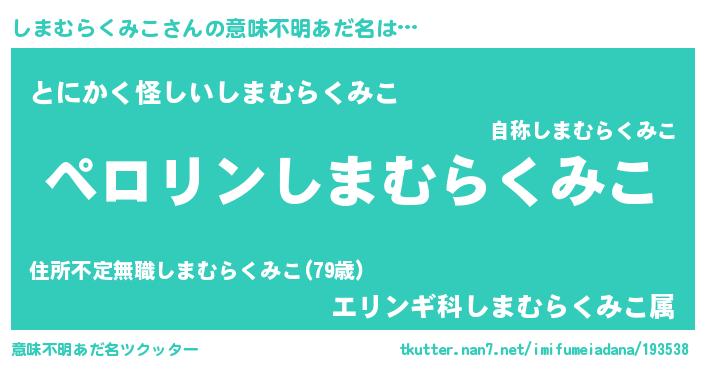 | 欧米人風あだ名 | 『しまむらくみこ・ステッグマイヤー』 |