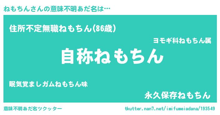 | ヘコむあだ名 | 『ねもちん(震え声)』『ねもぷりん』 |