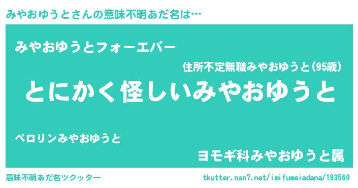 | ポケモン風あだ名 | 『ヒミヤオユウト』『ミヤオダネ』 |
